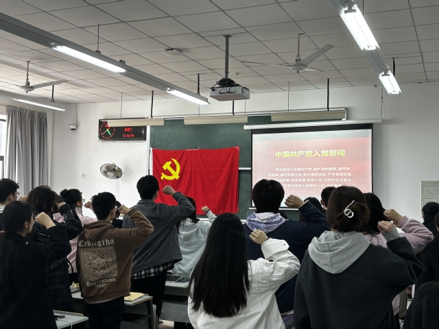 2024年3月19日下午,必赢76net线路唯一官方网站党委在3210教室举行预备党员入党宣誓仪式。学院党委专职组织员张闻主持仪式,2023年下半年新发展的党员和正式党员代表参加活动。