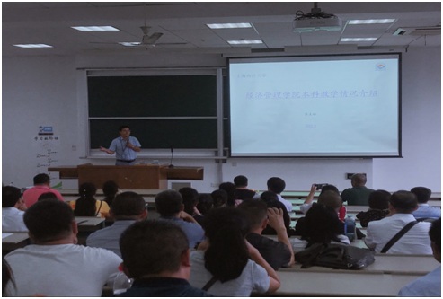 李老师他侧重从学院现设专业、专业课程设置、专业培养方案、学科发展情况等方面进行了介绍,并表示学院将义无反顾的履行培养新生的责任,与家长一起关注学生的学习、生活等各方面,推动学生成长成才。