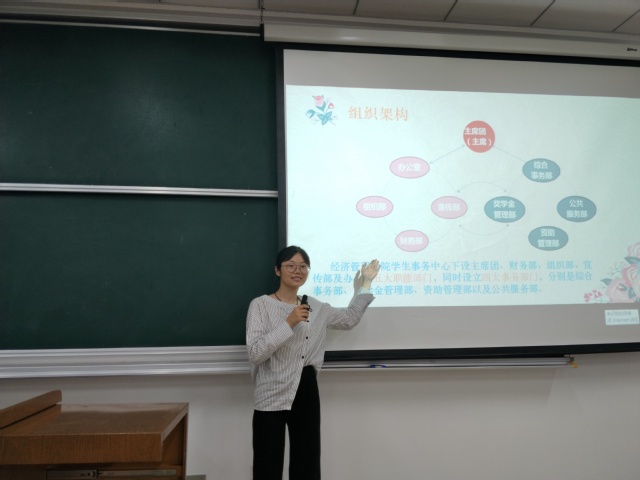 随后,必赢76net线路唯一官方网站学生事务中心主席陈慧玲同学详细地为大家介绍了必赢76net线路唯一官方网站学生事务中心。必赢76net线路唯一官方网站学生事务中心,是一个集学生事务办理和学生发展于一体的“资助育人”式学生工作平台,也是学院唯一一个既能锻炼综合实力又能获得工资收入的学生组织。中心以“资助育人、励志感恩”为着力点,希望培养一批具有“自我教育、自我管理、自我服务及自我监督”意识的优秀学生骨干,通过专业、高效、便捷的服务为学院学生的学习生活和发展提供精准帮助。目前,学生事务中心设有8个职能部门,各部门各司其职,又协调合作。全体工作人员都是学院家庭经济困难的同学,将以“勤勉、认真、专业、高效”为服务理念,全心全意为同学们服务。介绍完各个部门的具体工作职责和要求后,陈慧玲同学还用自己的亲身实践经验鼓励大家积极参加社团活动,更加充实大学生活;同时,她也非常欢迎各位新生积极加入我院的学生事务中心,时刻谨记“不忘初心,方得始终”。