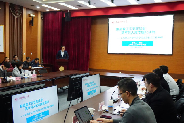 随后上海理工大学外国语学院程旺书记和上海海事大学经管学院黄顺泉副院长分别作了“推进教工党支部建设筑牢育人成才组织基础”和“商科大类培养模式改革探索与实践”的报告,从思想政治和专业建设的角度对于师资培育、人才培养等方面分享了各自学校的做法。