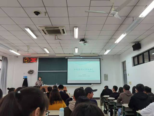 讲座开始之前,郭意群讲师带同学进行心理预备活动,增添了讲座的活跃氛围。本次讲座郭意群讲师从当代学生群体常见的心理问题、自我诊断、心理治疗干预等5个方面开展,向同学们介绍了心理问题出现的原因、如何识别自身可能出现的心理问题以及当心理问题出现时该如何及时解决并且干预。
