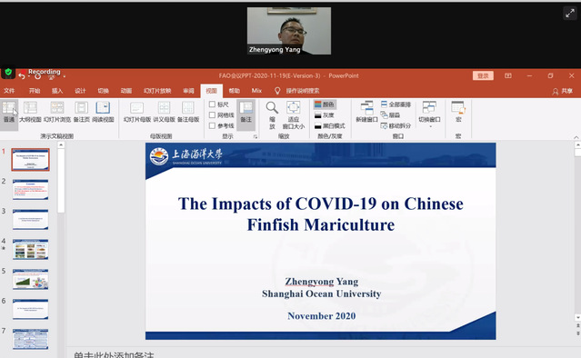 会议上,FAO渔业部官员、日本东京大学教授、韩国釜庆大学教授分别就新冠疫情期间FAO渔业部及日韩政府采取的相关应对措施以及渔业发展情况等进行了探讨。中国国务院发展研究中心农村经济研究室主任韩杨,国家海水鱼产业技术体系产业经济岗位科学家、必赢76net线路唯一官方网站院长杨正勇,必赢76net线路唯一官方网站校友、北京海桥营销咨询公司董事总经理樊旭兵应邀介绍了中国渔业应对新冠肺炎疫情相关情况。