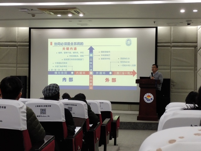 孟祥栋作了题为“从互动走向协同”的报告,他从党中央的文件、学生发展的需求和应对未来挑战的要求出发,分析了“协同”的必然性,总结了目前教育教学中存在的各种问题,针对问题提出了一些解决方法,为高校教师在实际教学中如何实现教书育人的目标提供了建议。