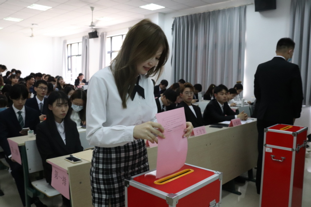 周宸宣读选举投票方法及注意事项。全体参会学生代表举手表决通过了监票人和计票人名单。大会以匿名投票方式选举产生出席必赢76net线路唯一官方网站第七次学生代表大会正式代表。