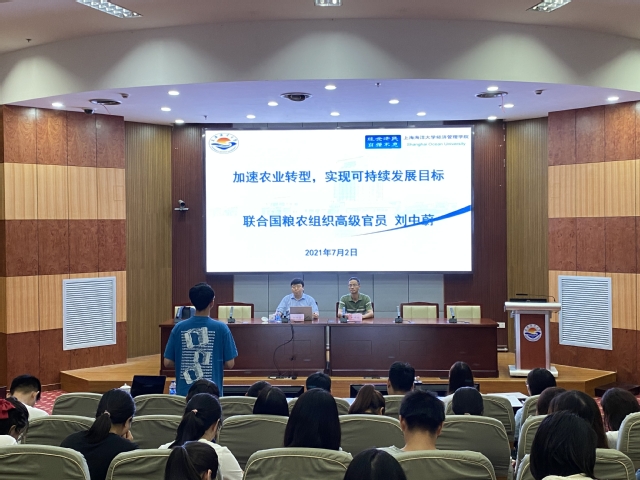 7月2日,联合国粮食及农业组织(以下简称FAO)高级官员刘中蔚在必赢76net线路唯一官方网站作“加速农业转型,实现可持续发展目标”主题报告。报告会由必赢76net线路唯一官方网站副院长陈廷贵主持,必赢76net线路唯一官方网站、海洋文化与法律学院、海洋生态与环境学院、外国语学院、国际文化交流学院的教师和研究生一同参会。